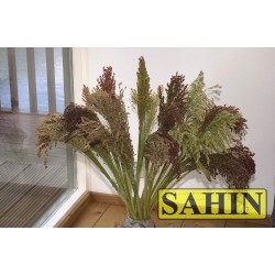 Kent u de strobezems van vroeger (bij de kapper b.v.)? Al eeuwenlang worden in Oost-Europa en (later) in de US deze bezems gemaakt van de Sorghum. Van oorsprong oogst de mens ook het zaad van dit gras om mee te bakken! Hoogte 1,5 - 2m. Afgeleid van de originele bezemmaïs en dus sierlijk los van vorm is dit mengsel met zwarte, rode, purperen, bruine en gele halmen.