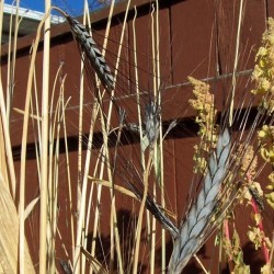 Zonder twijfel een van de mooiste emmertarwe-rassen op aarde met 4 rijen blauwgrijze zaden en lange, zwarte baarden. Het dorsen is door de harde kaf niet zo gemakkelijk bij dit oude ras, maar ach... geniet vooral van deze mooie tarwe op de tuin of in prachtige boeketten! Ze kunnen wel 2 meter hoog worden... Dit ras schijnt tot het begin van de 20e eeuw rond Utrecht veel geteeld te zijn. Omdat deze meegenomen is naar de VS, is de naam erg verbasterd, we kwamen zelfs deze namen tegen: Utregse Blauwe, Utrect Blue.