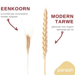 De plant stelt geen hoge eisen aan de bodem en is resistent tegen de meeste ziekten die voorkomen bij moderne graangewassen. Eenkoorn wordt op zeer kleine schaal nog professioneel verbouwd. Van eenkoornmeel kan je een brood bakken maar de glutenvormende eiwitten hebben naar hedendaagse maatstaven een lage kwaliteit waardoor Eenkoornbrood vrij compact blijft. Als je er meel van kan kopen, dan is deze erg duur: bedenk dat eenkoorn dunne 'platte' smalle aren oplevert en dat de korrels ook nog eens gepeld moeten worden. Misschien houd je uiteindelijk 1000-1500 kg gepelde geschoonde korrels over van een veld van 1 ha. Oude granen zoals de Eenkoorn waren gewend aan minimale bemesting, daar zijn de planten 'op gebouwd' zogezegd. Zouden ze groeien op een al te bemeste akker, dan zou het graan gaan legeren. Dus kunstmest toevoegen helpt niet voor een hogere opbrengst, integendeel. 1 kg voor 100 m2. ZaaimethodeZaaien: sept-okt of mrt-mei, dun uitstrooien, inharken en aandrukken. Liefst met een dunne laag grond bedekken. Op rijen zaaien kan ook, 2-3 cm diep is voldoende. Leveringsmaandenhet gehele jaar