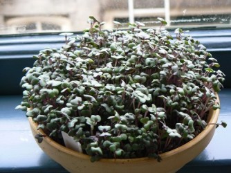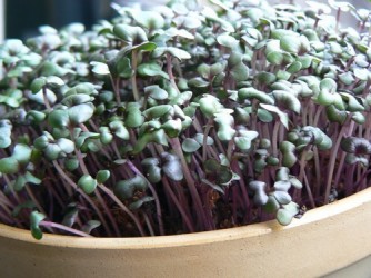 Dit soort wordt geteeld als microgroente (voor het jonge plantje met kiemblad of eerste gewone blad). Microgroente wordt op vochthoudend materiaal gekweekt (keukenrol, watten, aarde). Voor de ontkieming donker en warm, na de ontkieming licht en koeler. Groen met rode kiempjes met frisse koolsmaak.
