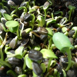 ECO GETEELDE ZADEN! Zonnebloemkiemen zijn heel lekker: een beetje zoet, een beetje notig. Eenmaal 1x geprobeerd ligt verslaving aan deze heerlijke “microgroente” op de loer…! Teel ze op een vochtige ondergrond (keukenrol, watten, doek of zaaigrond) en bedek het zaad met een doek of zaaigrond. Oogst het jonge plantje zodra het kiemblad geheel ontvouwd is.