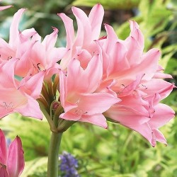 Door kruisingen tussen de Amaryllis belladonna (Tuinamaryllis) en de Crinum moorei, is een fraai soort, ontstaan met de goede eigenschappen van beide soorten: op stevige, 40-70 cm hoge stengels bloeien ze met lilaroze bloemen met witte zweem en heerlijke geur...!