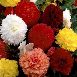 Een ijverige bloeier voor de zomer. Houdt van humusrijke grond en halfschaduw, 's winters vorstvrij de knollen overwinteren in droge turfmolm. Exotisch gefranjerde begonia’s in heldere en vrolijke kleuren gemengd. Ze zijn groot, imposant en dubbelbloemig.