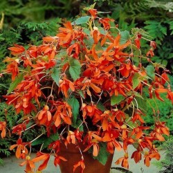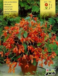 Zeer rijk bloeiende begonia, ook geschikt voor binnen, met hangende, kleine oranje bloemen, die doen denken aan die van de lidcactus. Natuurlijk een type voor potten en bakken. We leveren de ouderwetse reuzenknollen, die enorme groeikracht geven. Hoogte: 30-40 cm met 10-50 cm “overhang”. Begoniabloemetjes zijn eetbaar en hebben een sprankelende smaak!