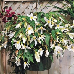 Nu ook in het wit! Deze zeer rijk bloeiende begonia (ook geschikt voor binnen) met hangende, kleine helderwitte bloemen, die doen denken aan die van de lidcactus. Natuurlijk is deze begonia heel geschikt voor potten en bakken. Hoogte: 30-40 cm met 10-50 cm “overhang”. Begoniabloemetjes zijn eetbaar en hebben een sprankelende smaak!