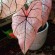 De grote pijlvormige bladeren zijn helderwit met groene nerven en groene omranding.
