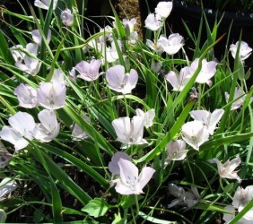 Subtiele schoonheid... zo zou je dit pareltje in bollenland kunnen typeren. Aan een slanke stengel (samen met het grasachtige blad) verschijnen 1-3 tulpvormige bloemen. Elke bloem telt 3 bloembladen, waardoor de vorm toch speels en lieflijk is; wapperend in de wind lijkt het een wolk van vlinders! De bloeitijd is van mei-juli. Omdat de bolletjes niet geheel winterhard zijn leveren we ze in het voorjaar. Bij goed winterdek is er wel een goede kans op overwintering. Geef ze een zonnige plek met lage onderbegroeiing.