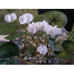 Het is niet zo’n kunst om zeldzame cyclamenknollen aan te bieden. Wel of niet uit de natuur geroofd, is er wereldwijd een levendige handel. Jammer dat maar een deel van de knollen het echt goed doen in de tuin. Wij hebben voor u de oplossing: elk soort dat we leveren wordt in Nederland in een pot gekweekt en heeft al blad (gegeven), zodat we hergroei durven garanderen! Bij het uitplanten de potgrond uit de potjes vermengen met de grond in de omgeving anders kunnen de knollen te nat blijven. WINTERBLOEIEND. Zeer winterhard soort, de beste winterbloeier (eind december - midden april) voor ons klimaat. De bladtekening varieert, de bladeren verschijnen in de herfst en blijven tot het einde van de lente (tenzij zeer strenge vorst ze om zeep helpt) de bloemkleur is helderwit. Af en toe (maar niet standaard) geuren de bloemen. Ze brengen al kleur in de tuin vóór de eerste sneeuwklokjes, lenteklokjes, winterakonieten of krokussen!