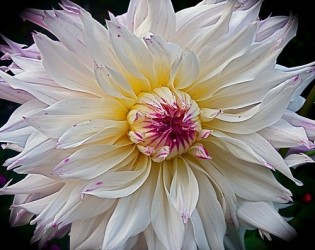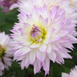 De koning van de zomerbloeiende knollen! De grote verscheidenheid aan kleur en vorm, de adembenemende volmaakte vorm en de goede houdbaarheid op de vaas maakt deze bloem zo populair! Een zgn. Decoratiefbloemig Type, d.w.z. met brede lintbloemen. Cremewit met lila randje: subtiel. Bijzonder compact: hoogte 60 cm
