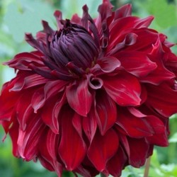 De koning van de zomerbloeiende knollen! De grote verscheidenheid aan kleur en vorm, de adembenemende volmaakte vorm en de goede houdbaarheid op de vaas maakt deze bloem zo populair! Een zgn. Decoratiefbloemig type, d.w.z. met brede lintbloemen. Enorm grote en toch stevige bloemen van wel 20 cm doorsnee! De kleur is fluweel-donkerrood. Hoogte 100 cm.