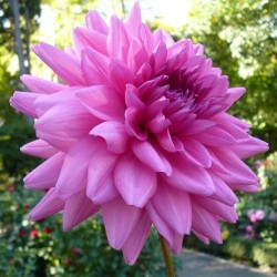 De koning van de zomerbloeiende knollen! De grote verscheidenheid aan kleur en vorm, de adembenemende volmaakte vorm en de goede houdbaarheid op de vaas maakt deze bloem zo populair! BIOLOGISCH GETEELD! Een zgn. Decoratiefbloemig Type, d.w.z. met brede lintbloemen. Lilaroze. Hoogte 110 cm.