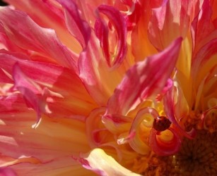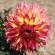 Een zgn. Cactusbloemig Type, d.w.z. met smalle tot zeer smalle, puntige lintbloemen. Hoe beschrijf je nu zo’n complexe bloem…: de lintbloemen van deze volle bolvormige bloemen zijn smal en speels gedraaid. Geleidelijk rijpen de dieproze met lichtoranje lintbloemen tot een stadium, dat het gele centrum onthuld wordt. Wat een bijzonder candykleur nietwaar?