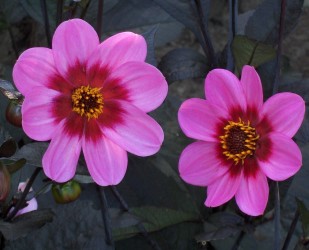 "Terug naar de oorsprong…" maar dan iets beter! Zo zou deze serie "Happy Single" kunnen worden getypeerd: alle variëteiten zijn donkerbladig, dat geeft al de garantie dat de bloemkleur extra goed uitkomt. De bloemen zijn enkelbloemig en komen in overvloedige hoeveelheid! 'Wink' is roze met een paars centrum.