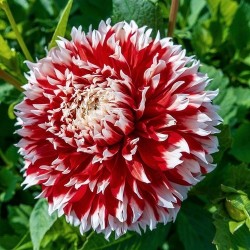 De koning van de zomerbloeiende knollen! De grote verscheidenheid aan kleur en vorm, de adembenemende volmaakte vorm en de goede houdbaarheid op de vaas maakt deze bloem zo populair! Deze enorme bloemen (tot 20 cm doorsnee) hebben naast de frisse kleuren (scharlakenrood met witte uiteinden) fraai gespleten uiteinden van elk bloemblad.