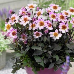 De koning van de zomerbloeiende knollen! De grote verscheidenheid aan kleur en vorm, de adembenemende volmaakte vorm en de goede houdbaarheid op de vaas maakt deze bloem zo populair! Een bijzondere serie met zeer donker loodzwart en fijngenerfd blad. Zelfs zonder bloem is de plant al heel sierlijk. De bloei ontstaat op 30 cm hoogte, een compacte plant dus: zeer lichtroze bloemen met witte uiteinden en een geel hart.