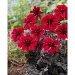 De koning van de zomerbloeiende knollen! De grote verscheidenheid aan kleur en vorm, de adembenemende volmaakte vorm en de goede houdbaarheid op de vaas maakt deze bloem zo populair! Een bijzondere serie met zeer donker loodzwart en fijngenerfd blad. Zelfs zonder bloem is de plant al heel sierlijk. De bloei ontstaat op 30 cm hoogte, een compacte plant dus: wijnrood met een donker hart.