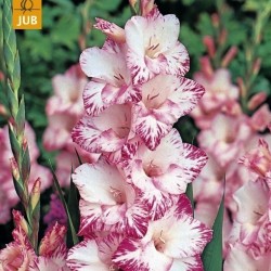 Grootbloemig type, we leveren een grote knolmaat die gegarandeerd stevige bloeistengels met veel bloemen geeft (mits op tijd geplant). Hoogte 100 cm. wit met violetten aders langs de randen