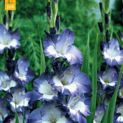 Grootbloemig type, we leveren een grote knolmaat die gegarandeerd stevige bloeistengels met veel bloemen geeft (mits op tijd geplant). Hoogte 100 cm. Dichter bij blauw kan je met gladiolen niet komen... Een wit centrum wordt omringd met lilablauw.