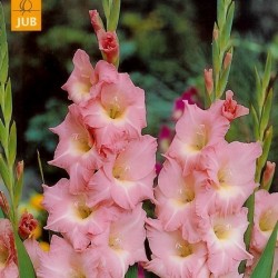 Grootbloemig type, we leveren een grote knolmaat die gegarandeerd stevige bloeistengels met veel bloemen geeft (mits op tijd geplant). Hoogte 100 cm. Zachtroze met wit hart, als appelbloesem…!