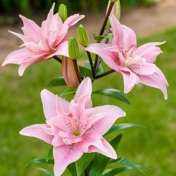 De lelie spreekt al eeuwen tot de verbeelding van de mensheid: in de bijbel als symbool van de schoonheid, in de Middeleeuwen als symbool van maagdelijke reinheid. De bloem geeft op een halfschaduwplaats in uw tuin een effect van verstilde schoonheid .… Orientaals Dubbele Lelie, 100 cm hoog. De heerlijk geurende, lilaroze bloemen zijn fraai gevuldbloemig zoals een witte waterlelie!