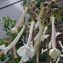 Onze kweker heeft dit fraaie soortje al jarenlang in zijn beheer en heeft deze ooit in Engeland herontdekt. Dit familielid van de bekende Gloxinia, maar ook van de rode Pijpje Lak (allemaal Gesneria-achtigen) heeft evenals de meeste van zijn zusjes en broertjes vrij dik en behaard blad. Dat duidt op droogtebestendigheid... Hoe droger en zonnige, hoe intenser de kleur en beharing (niet te gek maken uiteraard). Geef de knolletjes luchtige grond (potgrond mengen met cocopeat en zilverzand) en breng ze in maart-april binnen aan de groei. Vanaf eind mei mogen ze naar buiten en vanuit de dichte bladbasis belonen de plantjes je met trossen witte, pijpvormige bloemen, die ook nog eens heerlijk geuren! Bij zachte winters en met goede bladbescherming blijven de knolletjes buiten ook wel goed. Kweek dit makkelijke plantje met plezier en verspreid de knolletjes bij je vrienden en familie, dit plantje verdient het om veel bekender te worden!