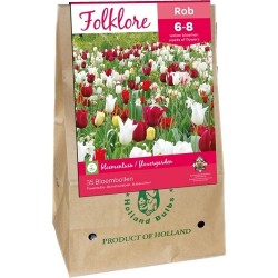 Dit pakket bevat 35 bollen: Tulipa White Dream (wit) Tulipa La Courtine (geel met rood streepje) Tulipa Carnaval de Rio (wit met rood streepje) Tulipa Pieter de Leur (dieprood) Tulipa Merlot (donkerpurper) Tulipa White Triumphator (wit) Narcissus triandus Thalia (wit) Of rassen, die dezelfde kleur hebben. Bol- of knolmaat1 pakket Leveringsmaandenseptember t/m november