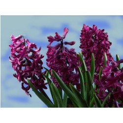 Heerlijk geurend. Zet ze in groepen bij elkaar, eventueel met een laag bolletje er tussendoor (Anemone blanda, Chionodoxa o.i.d.) Paarse Hyacint met donkergekleurde bloemstengels. Een betrouwbare Hyacint in de tuin die ook nog heerlijk ruikt. Voor zowel in de border als in potten op terras of balkon.