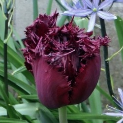 Ouderwetse "bewerkte" tulpen zijn weer helemaal in en exclusief! Een bijzonder speels effect: de bloemen zijn langs de randen gekarteld en iets lichter getint. EXCLUSIEVE TULP! De donkerste franjetulp: donker kastanjebruin met purperen glans.