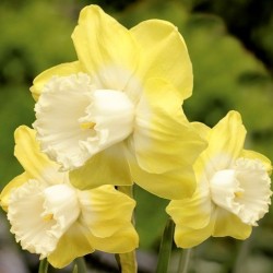 Een Jonquilla-hybride: heeft kleine bloemen, korte stengels en een heerlijke geur! Een grappige en verrassende kleurencombinatie: citroengeel met een wit cupje.