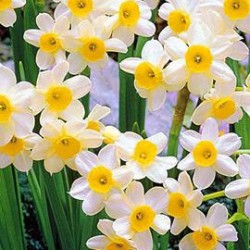 Een Jonquilla-hybride: heeft kleine bloemen, korte stengels en een heerlijke geur! Helder wit met een kordaat, lichtgeel cupje.