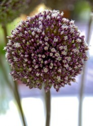 Bijzonder vanwege de kleur: paarsrood en de bloeitijd: juli-augustus. In het uitbloeistadium zijn de witte meeldraden duidelijk zichtbaar. De enorme (15 cm grote) bolvormige bloeiwijze is zeer vast en compact en doet denken aan de bekende trommelstok-uitjes (Allium sphaerocephalon), maar dan in het groot. Het blad blijft lang fris en de sterke, paarsgekleurde stengels worden wel 175 cm lang, met uitschieters (op vruchtbare klei) van 250 cm! Een ware hemelbestormer…