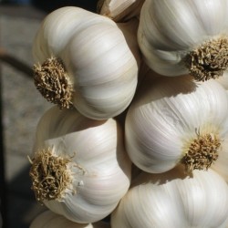 Het najaar is een goede tijd om knoflook te planten. Wij voeren rassen, die speciaal in Nederland worden geteeld. Ze kunnen van oktober-december worden gepoot (met een uitloop tot eind maart). Na ontvangst de bol openbreken en de tenen die dan los komen in de grond poten: 5 cm diep en 5-15 cm uit elkaar (afhankelijk van de groeikracht) en 30 cm tussen de rijtjes. In het najaar geplant staat de knoflook in februari al boven en in juni kunnen ze geoogst worden. Het loof vlechten zoals je knoflook wel eens in de winkel ziet en de bollen in de zon drogen. In de kamer zijn ze soms wel een jaar te bewaren! De teelt is eenvoudig en kan heel goed zonder gewasbescherming. Knoflook schijnt luizen in b.v. rozen te weren, het proberen waard! Ons grote sortiment knoflooksoorten is vermaard in Nederland! We hebben het ondergebracht bij onze groentezaden, zie aldaar of typ in het zoekvenster "Allium sativum".