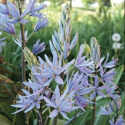 Opvallend zijn de stevige vlezige stengels met langwerpige trossen stervormige bloemen, zeer lichtblauw van kleur. De bloei is in juni. Zet ze lekker vochtig in zon of iets beschaduwd