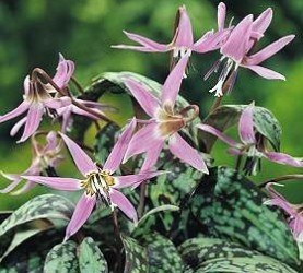 Binnen het geslacht Erythronium is dit de populairste en gemakkelijkst te kweken soort, hoogte 25 cm. Ze bloeien al in maart met rozepaarse of witte bloemen. Een extra verrassing is het blauwgroene blad met grote bruine spikkels.
