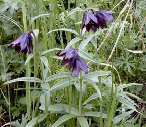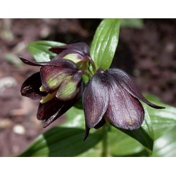 In onze zoektocht naar "zwarte" bloemen stuitten we op deze prachtige, maar zeldzame Fritillaria! Diep donker purper moeten de grote, hangende klokbloemen (1-8 per stengel) natuurlijk heten, een pittig contrast met het frisse blad. De hoogte zal ongeveer 25-40 cm bedragen. Geef ze een halfschaduwplek in vochthoudende, humusrijke grond. Bloeitijd april-mei. Inheems in Noord-Amerika en Japan. De naam Indian Rice dankt de plant aan de vele witte broedknolletjes, die aan de hoofdknol komen.