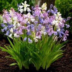 Speels, kleurig en toch een beetje wild.... de 40 cm hoge bloemstengels dragen een langwerpige tros met maximaal 15 hangende klokjes. Ze houden van vocht en (lichte) beschaduwing, ideaal als onderbeplanting van heesters en bomen, de verwildering is zeer goed. Als snijbloem zeer sterk, ze geuren niet. Het verschil met de Engelse boshyacint is de top van de bloeistengel: Spaans rechtop, Engels hangend, Spaans niet geurend, Engels geurend. KleurGemengde kleuren Hoogte30-40 cm Bol- of knolmaat8/+ Leveringsmaandenseptember t/m november