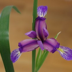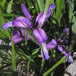 Vrij compacte Iris uit de spuria-groep met vrij smal blad, dat daardoor op breed gras lijkt. De bloemen geuren heerlijk fris naar komkommers of pruimen (iets daar tussenin) en verenigen een combinatie van violet, hemelsblauw, wit en geel. De plant stelt weinig eisen: zon tot halfschaduw, droogte is prima, maar vocht is beter. Tip: plant ze in een grote pot om de bloemen (die sierlijk tussen het blad bloeien) nog beter te zien. Hoogte 20-50 cm.