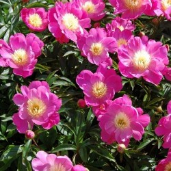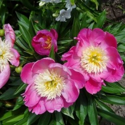 (1986) Voor de snij een beetje kort van stuk maar des te geschikter als border(tuin)plant. De planthoogte is 60-70 cm en de bloei (aanvang: eind mei-begin juni) is uitbundig: enkelbloemig, roze met crème- geel hart van petaloïden (= vergroeide meeldraden). Het blad krijgt in de nazomer en herfst een mooie bronzen afrijpkleur.