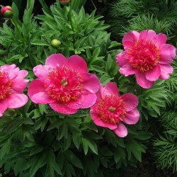 Zet pioenrozen op een zonnige plek, plant ze (direct na aankomst) zo ondiep dat er slechts enkele cm grond boven de neuzen komt, eerst de grond aandrukken.