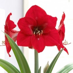 REUSACHTIGE BOLLEN! Deze grootbloemige Amaryllis heeft de grootste bolmaat die we kunnen krijgen en geeft gegarandeerd 3-4 bloeistengels met elk 4-6 bloemen. Helder bloedrood, zoals we de Amaryllis vooral van vroeger kennen!