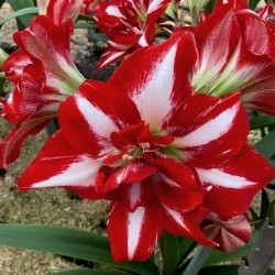 DUBBELBLOEMIG. Verbazing alom, de midden-grootbloemige Amaryllis met een dubbele hoeveelheid bloembladen per bloem: nog kleuriger, nog exotischer...! KleurPittig Rood met Wit Bol- of knolmaat38/42 Leveringsmaandenoktober t/m februari