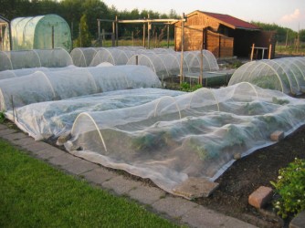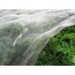 Insectengaas is de milieuvriendelijke bescherming van groentegewassen tegen insecten! Het beste kan het gaasdoek iets boven het gewas worden bevestigd dmv pvc-buis of een ander skelet. Dit gaas heeft een maaswijdte van 0,97x1,54 mm en biedt bescherming tegen kool-, wortel-, bonen- en uienvlieg. Verder koolgalmug, koolluis en vele andere. Het gewicht is 85 g/m². Bijkomend voordeel is dat gewassen tegen hagel en slagregens beschermd zijn. De warmte blijft onder het net hangen, waardoor in het voorjaar de oogst vervroegd wordt. Uiteraard is het gewas tevens beschermd tegen wild- en vogelvraat. Het UV bestendige Polyethyleen is jaren te gebruiken en toch recyclebaar. Foto's uit