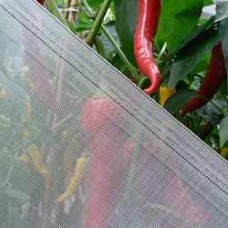 Insectengaas is de milieuvriendelijke bescherming van groentegewassen tegen insecten! Het beste kan het gaasdoek iets boven het gewas worden bevestigd dmv pvc-buis of een ander skelet. Dit gaas heeft een maaswijdte van 0,27x 0,77 mm en biedt bescherming tegen VRIJWEL ALLE insecten: kool-, wortel-, bonen- en uienvlieg, verder koolgalmug, alle luizensoorten en mineervlieg. Zelfs de zeer kleine witte vlieg en (Californische) trips wordt compleet geweerd. Het gewicht is 123 g/m². Bijkomend voordeel is dat gewassen tegen hagel en slagregens beschermd zijn. De warmte blijft onder het net hangen, waardoor in het voorjaar de oogst vervroegd wordt. Uiteraard is het gewas tevens beschermd tegen wild- en vogelvraat. Het UV bestendige Polyethyleen is jaren te gebruiken en toch recyclebaar. Foto's uit