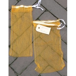 Ideale fijnmazige zakken van 14x26 cm, die wij zelf gebruiken voor het verpakken van bollen, sjalotten, uitjes e.d. De kleine maten kunnen bijvoorbeeld worden gebruikt voor de bescherming van druiventrossen, maïskolven e.d. tegen vogelvraat, wespen, muizen etc. maar ook voor de opslag (bijvoorbeeld door ophanging) van kleine hoeveelheden bollen, uien, aardappels etc. De grote maat is ideaal voor de opslag van bijv. aardappels en uien. De netlonzakken zijn rottingbestendig en voorzien van een sluit- en ophangkoord.
