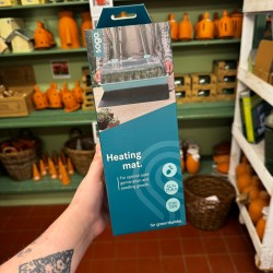 Zwart kunststof mat met ingebouwd verwarmingskabeltje. Zet ze op tempex of in een geïsoleerde ruimte voor hoog rendement. ± 21Watt.