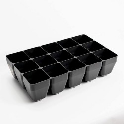 Geen losse potjes meer nodig, deze plaat (of tray) is een schakeling van 15 vierkante potjes (3x5 stuks) met een handige afmeting: 7x7x9 cm.