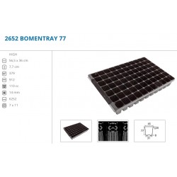 De verticale inkepingen dwingen de wortels tot verticale groei. Onderzoek geeft aan, dat planten voor beworteling meer behoefte hebben aan diepte dan aan breedte. Er gaat dus veel ruimte verloren bij de opkweek met potten, waarbij de diameter gelijk is aan de hoogte, er verdampt ook meer water. Een smal en hoog potje is dus het meest ideaal. De trays bevatten 77 potjes (7x11) en zijn 56,5x36 cm. De potjes zijn 45x45mm en 77mm diep. Leveringsmaandenhet gehele jaar