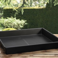 VANWEGE DE GROOTTE VERZENDEN WE DEZE BAK NIET: AFHALEN DUS! Handige, waterdichte bak om zaaibakjes of potjes op te zetten. Ideaal voor gebruik bij plantenopkweek als een extra waterbuffer vereist is, of als morsen met water niet handig is. (lxbxd) 100x100x12 cm, inhoud: 100 liter. Zwart onbreekbaar kunststof.