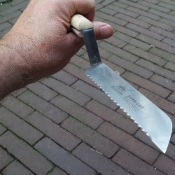 Dit mes is voor linkshandigen en telt 20 vlijmscherpe kartels. Heftlengte 15 cm. Leveringsmaandenhet gehele jaar