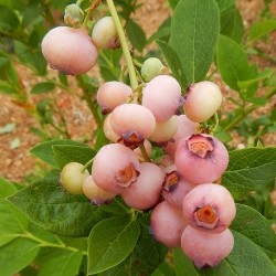 Een wonderschone “blauwe” bes, die dus niet blauw is. De bessen rijpen in een variatie van wit met roze, een fraai gezicht op je bord...! De heerlijke smaak is gelijk aan de blauwe bes overigens. De planten blijven vrij compact en zijn dus ideaal voor de teelt in de tuin, maar ook voor grote bakken. Als toegift geven de struikjes een diepe herfstkleur in tinten roze en rood. Dit bessenras kan zonder problemen na zelfbestuiving vruchten geven. Een goede kruisbestuiving met een ander vroeg tot middenvroeg ras geeft echter dikkere en meer vruchten.
